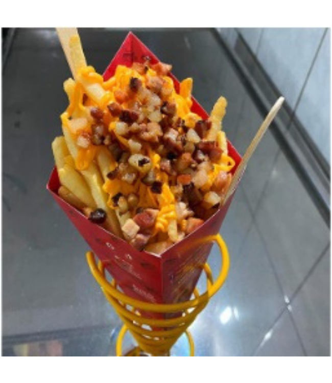 Batata no cone c/ queijo, bacon e cheddar
