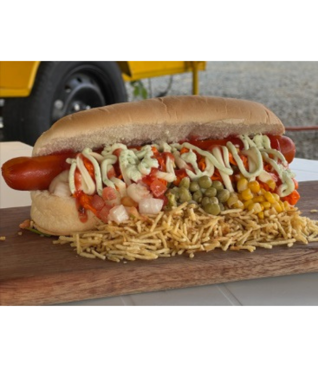 salsicha – milho – ervilha – tomate - alface – maionese – ketchup – batata palha